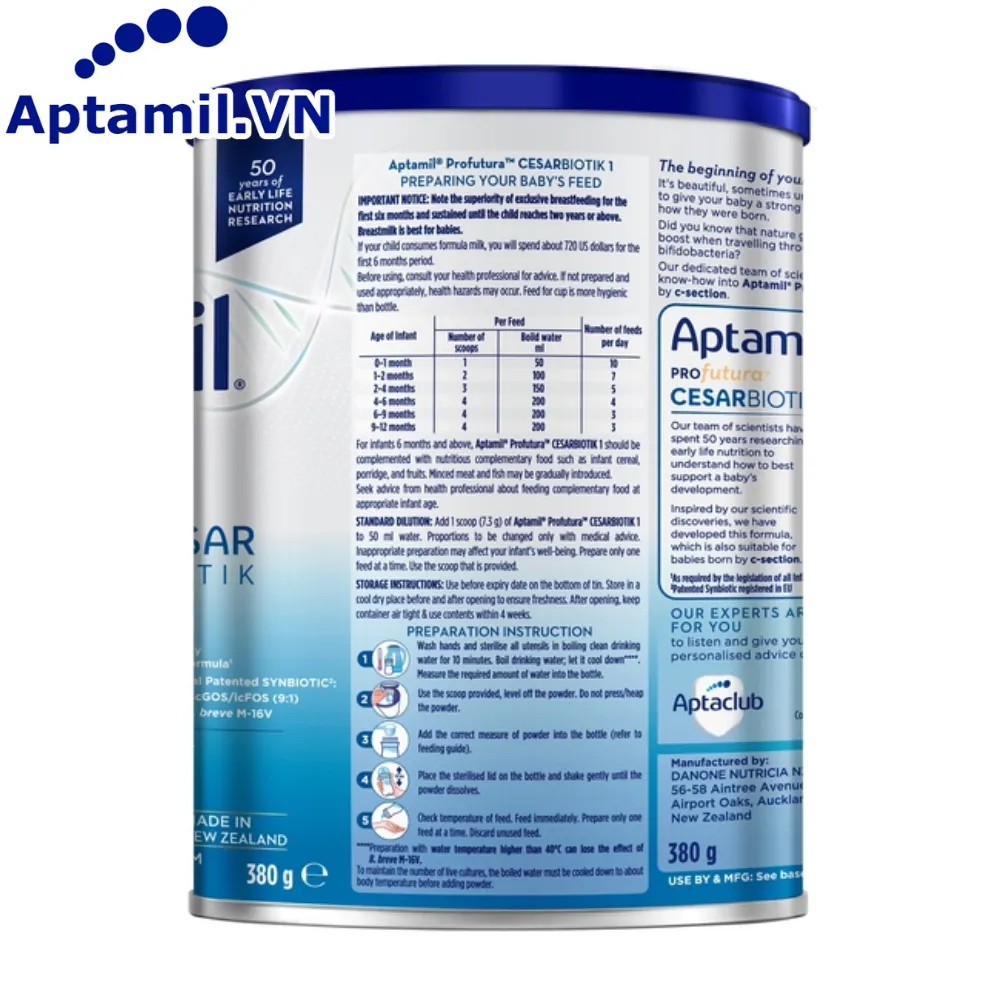 Sữa Aptamil Profutura Cesarbiotik số 1 (380g) cho trẻ 0-12 tháng