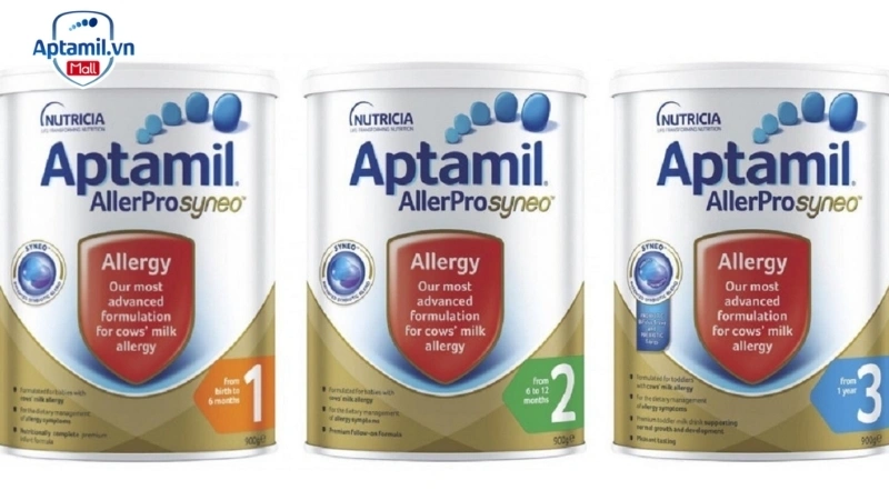 - Sữa Aptamil AllerPro Syneo số 3: Dành cho trẻ từ 1 tuổi trở lên, giúp hoàn thiện hệ miễn dịch và cung cấp nền tảng vững chắc cho sự phát triển nhận thức và thể chất khi bé bước vào giai đoạn chập chững.